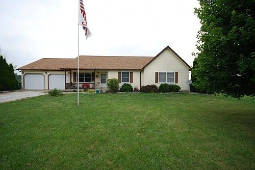 Get that country feeling and fall in love with this 3BR 2BA ranch setting on two acres of land backing up to farm land. The family room has cathedral ceiling and wood burning fireplace and opens to the wood deck and eat in kitchen. Watch both the sunrise and sunset from the large deck facing North overlooking farm land. With a new roof and low maintenance exterior you will have plenty of time to enjoy.