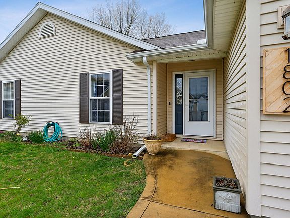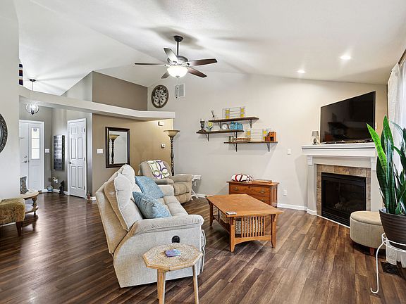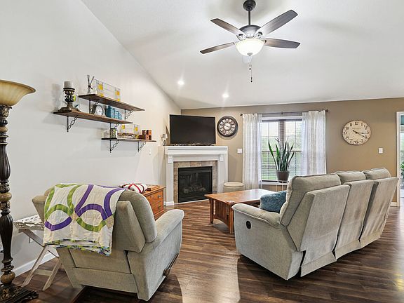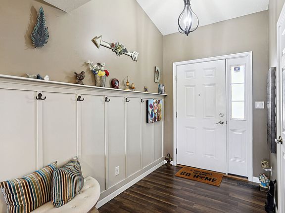 Meticulously maintained home has been loved by the seller and is filled with numerous improvments. Welcoming entry way is so appealing and functional and newer laminate flooring can be found in all rooms but the bedrooms. Open floor plan with soaring cathedral ceilings is a real focal point along with the gas fireplace and the handy built in remote holder keeps everything hidden away. Eat in kitchen features an abundance of prep space and cabinets with an oversized pantry. Light and bright four season sunroom with walls of windows brings the outside in. Enjoy the relaxing primary suite with a generous walk in closet and ensuite bathroom. Two more bedrooms and a guest bath finish off the sleeping quarters. A separate laundry room is much appreciated. Upon entering off the three car garage is a very chic drop zone. Situated in a quiet cul-de -sac and the tree lined private back yard is a true favorite. The shed is great for all those extras and the play set will stay.