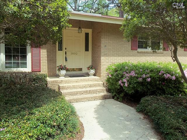 One owner, meticulously maintained and beautifully landscaped with full sprinkler system. Kitchen with parquet floors, custom cherry cabinets, built in desk, breakfast bar PLUS breakfast nook could be sun room. Formal Living Room with hardwood floors, custom built-ins and wood burning fireplace. Formal Dining Room with hardwood floors. Family Room adjacent to Formal Open Living Room with hardwood floors or you could make this space one large family room. Master Bedroom with his/her closets and private bath. 3rd bedroom has custom built-ins. Large deck overlooking fully fenced backyard, and workshop with electricity or one car garage. Perfect location, close to downtown, I-26, I-20 plus Harbison is only 12 minutes away. Must see!