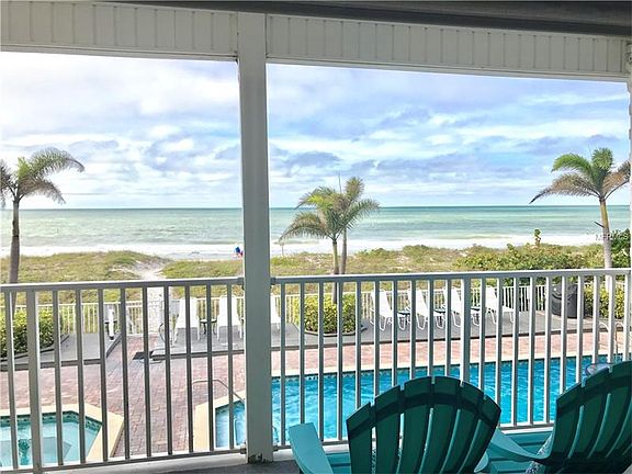 DIRECT Gulf of Mexico views from this beautiful unit located in a small 17 unit project. This 1st floor unit has 2 covered/reserved parking spaces under building, is fully furnished, and has a large balcony overlooking the sands of IRB and the Gulf of Mexico. The project enjoys a full sized pool, in ground spa, elevator, ownerâs storage, and a gas grill. Great cash flow from the 7 day rentals allowed, and the unit consistently generates strong rentals. The A/C and water heater are less than 2 years old. The master has a king bed and full bath, 1st guest bedroom has a queen, and 2nd guest bedroom has two twin beds with access to guest bathroom. The living room, dining room, kitchen, and balcony all overlook the Gulf to enjoy spectacular sunsets.