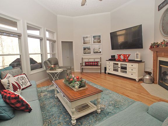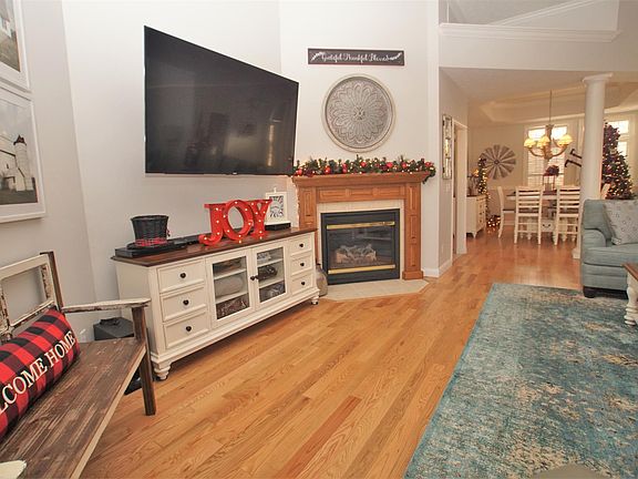 It takes just one look... One step inside... to know, this is the one!! Located on a picturesque lot with a wooded & golf course view, you'll delight in this brick home with over 2000 sq ft of luxury living. Take that step in the front door & smile at an open concept that showcases soaring ceiling lines, white trimwork, rounded pillars, crown moldings & a beautiful living rm with gas fireplace that opens to a separate dining area. Then, enjoy the kitchen with hickory cabinets, wine rack, glass front doors, pantry, center island & coffee bar. 3 Bedrooms & 2 baths will invite family & friends to visit & you will love entertaining them on your 2 tier deck & paver patio overlooking that golf course view. So much more... So little time.