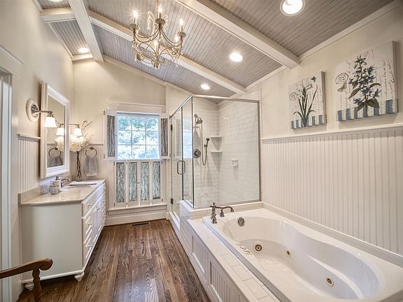 Master bedroom and bath are straight out of Southern Living Magazine. Beadboard ceiling in entire master suite, including the closet! One of the best landscaped yards in Lebanon with outstanding curb appeal. Superbly maintained. Rooms are all large yet the house is so cozy. Den has 12" wide distressed pine flooring and painted brick walls!