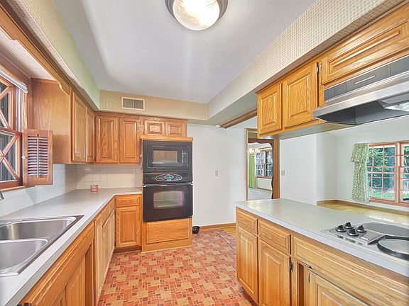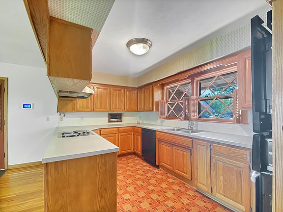 Welcome to Crestview Heights, where an impressive opportunity awaits you in this magnificent mid-century modern ranch home. With 5 bedrooms and 3 baths, spanning over 3500 square feet of finished living space, this property offers an abundance of room for comfortable living. Nestled on a sizable corner lot, this home provides the perfect balance of privacy and convenience. The oversized side load garage not only accommodates your vehicles but also includes an attached heated workshop complete with custom cabinetry, catering to all your hobbies and storage needs. As you step inside, you're greeted by a stunning slated floor foyer, guiding you into the expansive living room. While currently carpeted, this room boasts original hardwood flooring underneath, waiting to be unveiled. Throughout the main level, most of the hardwood flooring is exposed and in exceptional condition, accentuating the home's timeless charm. The main floor family room/hearth room is an ideal space for informal gatherings, seamlessly connecting to the kitchen and featuring a cozy wood-burning fireplace. The island kitchen is a culinary enthusiast's dream, offering a stainless steel vent hood, an eating bar, built-in appliances, and ample cabinet space for all your storage needs. While preparing meals, enjoy the picturesque view of the brick-paved courtyard, adding a touch of serenity to your everyday life. If spacious bedrooms are a priority for you, this home delivers in grand style. The primary bedroom, measuring approximately 18' x 14', showcases illustrious hardwood flooring, an abundance of windows allowing natural light to flood in, and an updated en suite bathroom. Additionally, the primary bedroom boasts a cedar-lined walk-in closet with built-in shelving and drawers, providing both functionality and elegance. The lower level of this stately ranch home presents endless possibilities for entertaining family and guests. With two large living areas and two enormous bedrooms, everyone will have their own space to relax and unwind. The third bathroom on this level maintains its mid-century splendor, adding a touch of nostalgia to the overall ambiance. The backyard of this 1/3 acre lot boasts mature trees offering plenty of shade for outdoor entertaining. There's a covered patio and a sprinkler system. This home is ideally located, offering easy access to parks, bike paths, and public transportation. Whether you enjoy outdoor activities or a quick commute, this property caters to your needs. Don't miss out on this remarkable opportunity—call today to schedule a private viewing and see for yourself the endless potential this home has to offer.