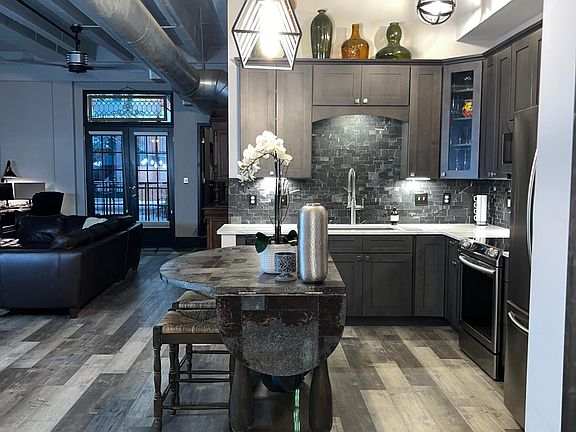 Walk to Historic Roswell's Restaurants, Shops, and Art District! Experience the perfect blend of urban sophistication and suburban charm in this unique warehouse-style condo, located in the beautifully repurposed Old Roswell High School. This stunning unit has been thoughtfully updated with over $50,000 in renovations. Soaring 16-foot ceilings, expansive oversized windows, and a spacious covered patio create an airy, light-filled atmosphere perfect for entertaining or relaxing. Enjoy stylish industrial lighting, luxury wood-look LV floors, stone countertops, and a large kitchen with upgraded cabinetry and custom closets throughout for smart, functional storage. A washer/dryer (brand-new) and refrigerator are included, making this home move-in ready. Located in a gated community featuring top-notch amenities including swim and tennis facilities, beautifully landscaped walking paths, and plenty of green space to enjoy. Live where history meets modern convenience ENJOY THE URBAN LIFESTYLE IN SUBURBIA! No smoking. Utilities responsible by renter include electric and cable/internet. All other utilities are included. Parking is available in large lot at the entrance to the building