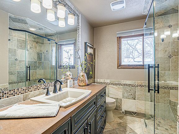 This well-established home in central Bismarck is waiting for YOU! The updates and upkeep on this home are remarkable. You will love the option of one level living in this Ranch style home with MAIN FLOOR LAUNDRY! The kitchen includes an eat up counter and built-in hutch for extra storage. You will also find your dining room and living room right off the kitchen. You will be amazed at the space in the 1st bedroom! There are 2 closets and a sitting area to allow room for furniture and to move around without feeling boxed in. You will be happy with a good-sized 2nd bedroom on the main level also. Now let's talk bathrooms! The main floor bathroom has been updated with a gorgeous tiled shower and beautiful vanity. We aren't done yet. Downstairs you will find a beautiful family room that features an amazing custom wall with built-ins and a fireplace. This space is so cozy and comfortable that you don't even realize you are in the lower level. There is a wet bar and sitting area for all your entertainment needs. The bedroom downstairs is as large as the 1st bedroom upstairs. It leaves the worry out about whether your furniture and dressers will fit. If you were impressed with the upstairs bathroom, let's discuss what you will find downstairs! Not only is the downstairs bathroom spacious, but it has a jetted tub and steam shower! Worried about storage? Not with this home! There is a very large utility room with ample storage for all your extras. Let's not forget about the garage. This double stall garage has heat and a finished floor with a workstation area ready for all your projects. Right outside the garage in the backyard is a patio area that will be perfect for the days when the weather warms up. Contact a realtor today to schedule a showing.