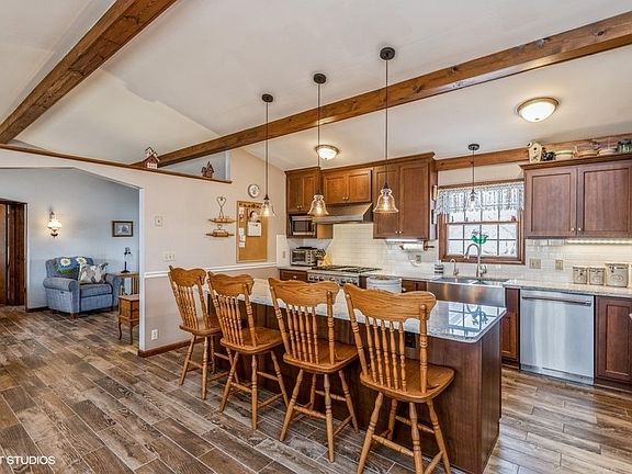 NEW PRICE! ~ What a wonderful place to call your next HOME ~ Do Not Delay! Take a look at this spacious ranch home featuring: 5 bedrooms, 2 1/2 baths, 1720 square feet each level, 2 stall attached garage, a great sun room, finished walkout basement, along with a covered porch, and a spacious updated deck offering awesome views! This Kitchen offers solid wood cherry cabinets, granite countertops, high end commercial kitchen stainless steel appliances, along with a complete master bath remodel and so much more! The location will not disappoint; right near the recreational trail! And yes...there is a Large Utility building 30' x 48'; all within 2 miles of downtown Pella! This home offers a newer AC/Furnace/Water heater along with newer asphalt shingles. On the property too: you have the option to utilize the outdoor wood stove; which will heat the house easily, along with about a 2 year supply of wood! When you tour you'll see that you can enjoy your very own fruit orchard: apple, pear, cherry and peach trees! Along with Asparagus and Rhubarb! Schedule your showing soon to capture this amazing, rare opportunity!