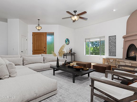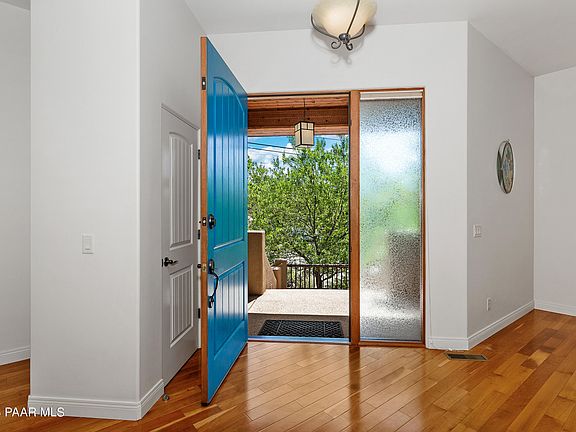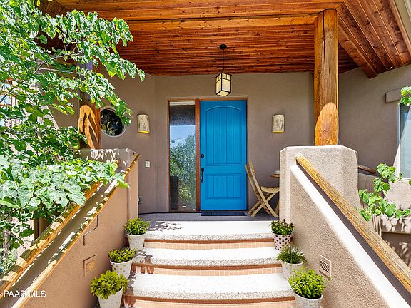 Beautiful Santa Fe, spacious 5 Bedroom 3.5 Bath + Powder Room. THIS HOME HAS IT ALL! Chef's Kitchen, huge Deck with trellis over 3 Car Garage and VIEWS of Thumb Butte plus city lights. Perfect for BBQ, family gatherings or just relaxing. Closet room off kitchen deck houses a 2nd fridge and storage. 2 Level home complete with 2 unique Primary Suites, walk in closets, storage inside and out. 2 fireplaces [1 natural gas, 1 wood-burning], 2 HVAC units, 4 zoned heating and cooling. All interior doors are solid wood.