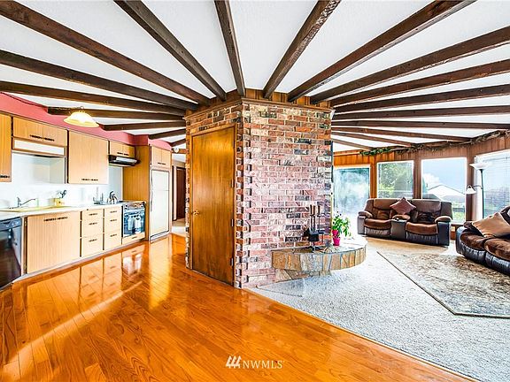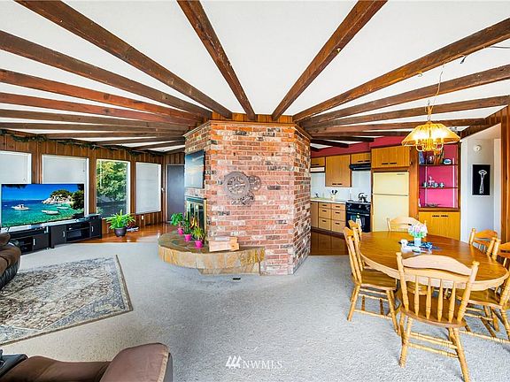 Unique home with tons of character in sought after Skyline neighborhood! 1 story home with partial views of sound and islands. Octogen shaped living room, dining room and kitchen combo with wooden ceiling beams and stone wood burning fireplace. Large master bedroom with lots of closet space plus private bath. Good size additional bedrooms, bath and laundry room. Deck off of living/dining room great for your morning cup of coffee or afternoon sun. Don't delay this home will go fast!