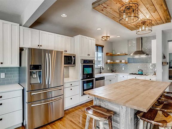Stunning "Colorado Chic" remodeled 5 bed/4 bath home on a 13,000 SF lot, in cul-de-sac, backing the 17th hole at Colorado National Golf Course! Trend setting; "Colorado Chic" is like if Chip and Joanna Gaines had a baby with Colorado. A perfect blend of modern finishes with the charm and custom features of Colorado (ie: wood front door w/ 3 panel frosted glass, island and bar wrapped in barn wood, beetle kill mantle and open shelving, beer cellar, etc). The property was remodeled top to bottom four years ago with every detail in mind! Incomparable to the competition this home includes: a large addition added to the back of house w/ vaulted ceilings and 6' windows providing the ultimate open living space, gourmet kitchen w/ gas cook top, double ovens, ss appliances, farmhouse sink, quartz countertops, glass subway tile backsplash, island w/ butcher block countertops and pendant lighting, hardwood floors throughout the main floor, floor to ceiling stacked stone fireplace, main floor den, extended front patio w/ trex decking, 4 bedrooms upstairs, plantation shutters, full sized finished basement w/ bedroom, 3/4 bath, wet bar, and beer cellar, extensive backyard professionally landscaped w/ covered patio, lush vegetation and perennials, planter boxes, pre-wired for hot tub, shed, and a flagstone patio at the back of the yard to watch golfers go for the green in two over the water with the Rockies as the backdrop. The property also will include owned solar saving you hundreds each month on your utilities! This home is a must see, and more importantly a must buy!