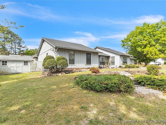 Charming ranch on a spacious corner lot in the well-established Clairway neighborhood! This 3BR/2BA home offers a bright sunken living room with built-ins, a cozy stone fireplace, and a stylish wet bar perfect for entertaining. A formal dining room and an eat-in kitchen provide flexible spaces for gatherings and everyday living. The large primary suite features a walk-in closet, jetted tub, and private deck access. Relax in the beautiful sun porch or unwind in the peaceful fenced backyard featuring a serene Japanese garden. A two-car garage with storage, a new water heater (2024), and a prime location near Cape Fear Valley Hospital, Harris Teeter, and Publix make this home a rare find blending character, comfort, and convenience!
