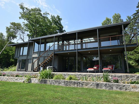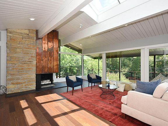 The views of the river & waterfall are absolutely incredible from every room in this renovated walk-out ranch. New Velux skylights bring in sunshine along the entire length of the main level, where you'll find a brand new kitchen, quartz counter tops/snack bar, high-end SS appls, gorgeous Brazilian chestnut floors & new master BA. The original stone & copper NFP face & ship-lap ceiling are amazing! The walk-out lower level has a fam room w/a 2nd NFP, gleaming terrazzo flrs, a brand new PR & full BA, 2 guest rooms (3rd BR is best suited as a den). New landscaping, updated decks/railing.