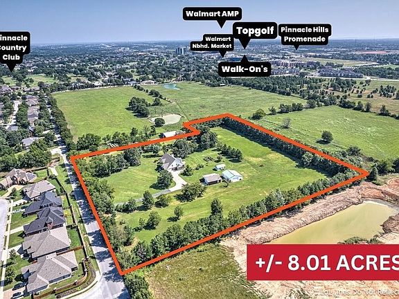 Welcome to this remarkable listing offering 8.01 acres of prime real estate, just minutes away from some of the area's most coveted attractions. Nestled in close proximity to the prestigious Pinnacle Country Club, the vibrant Walmart AMP, the upscale Pinnacle Hills Promenade, and the entertaining Topgolf, this location provides the perfect blend of convenience and leisure. This exceptional property boasts a stunning 3,730 sqft house that graces the landscape, adding to the allure of this enticing opportunity. Additionally, two spacious storage sheds are included, providing ample space for your storage needs. Whether you envision building your dream home, creating a captivating development, or exploring various investment possibilities, this expansive 8.01-acre parcel opens the door to a world of potential. Don't miss the chance to seize this rare offering in a highly sought-after locale with boundless opportunities awaiting your vision.