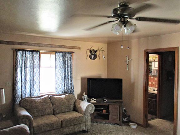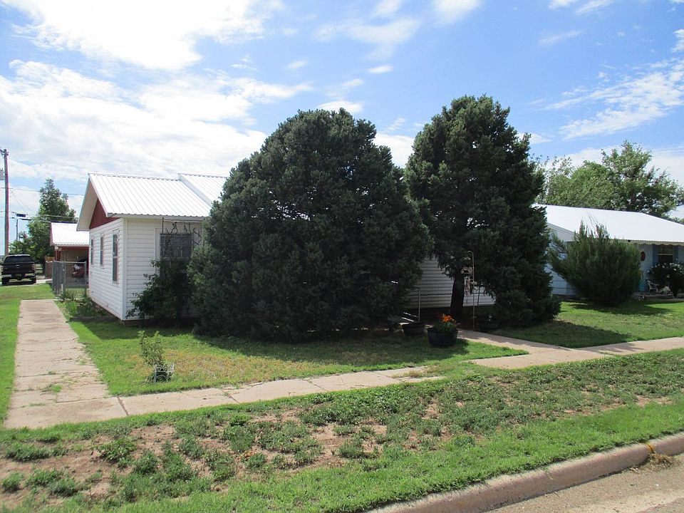 This nice well-maintained 3 bedroom, 1 1/2 bath aluminum siding home is located on the corner of E. Max Ave. and S Monroe St. The metal roof is approximately 7 years old and wheelchair accessible ramps on the front entry and back porch. The house is cooled with window units in the summer and warmed by a floor furnace in the winter. Spacious living room, galley kitchen with kitchen nook. Separate laundry room / mud room. Three spacious carpeted bedrooms with great lighting and nice closets. A linen closet located in the hallway for extra storage. Spacious newly fenced backyard with a wheelchair accessible ramp which goes into an enclosed back patio/sun room. Two car detached garage, covered carport, with metal roof, new paint on the garage and storage building. (Approx. 1128 sq. ft according to Quay County Tax Assessors)