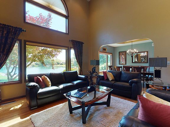 Enjoy gorgeous lakefront views in Lincolnshire Fields! Set back from the road to take full advantage of the peaceful lake views, this meticulously custom-designed home perfectly matches the spaces to the views. A brick arch surrounds the front door. Once inside, the foyer opens into a 2-story great room with gleaming hardwood floors and a wall of Andersen windows, framing the picturesque lake view. The dining room adjoins the great room and hallway via arched doorways. The fully remodeled kitchen is wide open to the family room and casual dining area, all under 9-foot ceilings with fireplace. The kitchen boasts granite counters, tile backsplash, under-cabinet lighting, & upscale appliances. An Andersen sliding glass door opens onto the deck, patio, and backyard, all overlooking the mature landscaping and lake. The 1st floor master suite overlooks the lake and features a luxurious bath with whirlpool tub and separate shower, along with generously sized walk-in closet. The 2nd floor offers two bedrooms with a shared hall bath. A 4th bedroom/office on the 1st floor features a wall of stained solid oak bookshelves, double windows, and hardwood floors. The finished basement features daylight windows and is currently configured as a home gym. The space could easily function as a media, game, or family room. There's also a unfinished room that's perfect for storage or a workshop. The 1st floor laundry room offers generous space that includes a sink and built-in cabinetry. Roof new in 2020. HVAC is 95% efficient Lennox furnace and 21 SEER Lennox a/c. The garage has an epoxy coated floor. See HD photo gallery & 3D virtual tour!