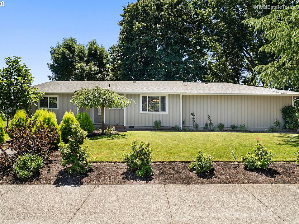 The home interior has new kitchen, new vinyl windows, new flooring, new bathroom, remodeled laundry & fresh paint. Newer water heater. Newer Forced air. Awesome Garage work area. The yard is beautiful large garden. Wonderful work shed. Recent new roof. Sprinkler system. Garage has awesome work station. Nearby walking trail.