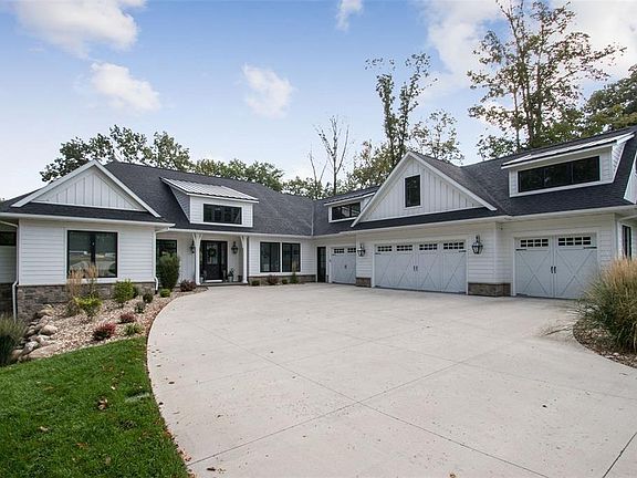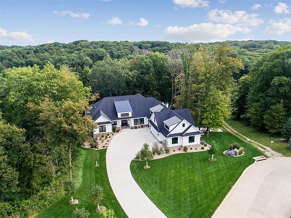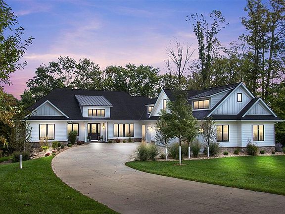 This custom-built farm home combines modern convenience with country elegance. The main level offers over 3,200 sq ft of open living space with 5" solid hardwood floors. Every room has a window with a view. The 14 and 16 ft ceilings create a feeling of grandiosity with authenticity, a sentiment made tangible by the great room with oversized alder ceiling beams and a 42 in Napoleon gas fireplace. An oversized walk in pantry with reclaimed wood shelving, which sits next to the gourmet kitchen with a huge 10.5 sq ft island with Granite counter tops and Jenn-Air appliances. The main level also boasts custom Kolbe windows, custom Alder cabinets, solid core doors, and a four-stall heated garage. The master suite includes a deck overlooking the private backyard and pond, connected to the room by double sliding doors. The huge master bathroom showcases large custom 6 ft marble mosaic tile and contains a claw-footed tub, walk in shower, and his-and-her sinks. The oversized master closets lead to the large laundry room, with both washer and dryer. The other three bedrooms all have large walk-in closets and en-suite bathrooms. This modern smart home has every feature, including: security cameras; charging stations; and amenities controlled via mobile device, including the lighting, thermostat, and whole-house sound system. The lower level offers boiler-heated floors that extend to the oversized lower level garage, which can fit up to six cars. An insulated three-season porch overlooks the 2.73 acre country oasis, which includes a large patio with firepit, stone walls, and a path to the community pond. Call today for a private showing.