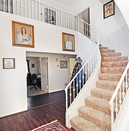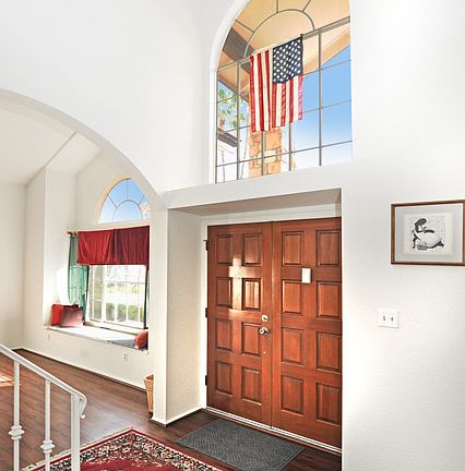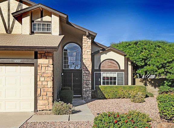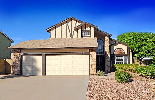 Great curb appeal! Unique 2 story European look 4 bedroom home in desirable community. Exterior has upgraded stone facade and mature landscaping. Oak cabinets and tiled counters in the kitchen and enjoy the adjoining family room. Plenty of quiet space in the separate living room. Beautiful spiral staircase leads to 3 bedrooms. The 4th bedroom is on the main level and can easily be used as a den. The Master Suite is spacious, the bathroom has double sinks and is full sized. New laminate wood flooring in main living areas downstairs. Carpeted bedrooms upstairs with tiled bathrooms. Extended patio, RV parking, fenced yard. New interior paint in 2016. New exterior paint in 2015. Lots of storage. Close to schools, shopping, parks, fitness centers and the Loop 101 Freeway.