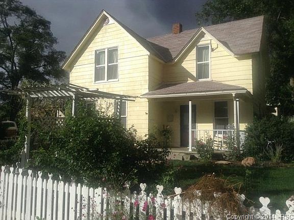 Home built in 1907 has many updates. Views of Pikes peak, hand made decorative fencing, beautifully landscaped with perennials including raspberry bushes; many of the concrete yard ornaments remain with the home. New detached garage. Inside has new paint, updated kitchen with granite counter tops, new electrical panel 2011, remolded bathroom, new tank less hot water heat system. Office on the main with built in shelves and seating. 6 new windows on upper level. New roof. Enclosed Sun Porch with laundry hook-ups. Whole house has blown in foam insulation 2013, except for office area. 2014 repair of sewer pipe section.