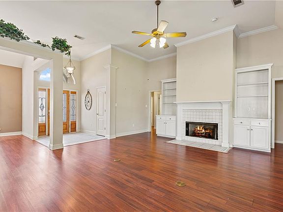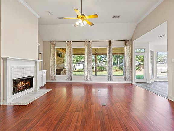Charming 4-bed, 3-bath home welcomes you with a modern touch. Complementing the open, split floor plan this home has no carpet. The heart of the home boasts a newly updated kitchen. Enjoy year-round comfort with a 1-year-old A/C unit and the luxury of 2 gas water heaters. Step into the spacious living room, centered around a cozy gas fireplace, flanked by built-in bookcases—great for displaying your literary treasures. The primary bedroom is a serene retreat featuring an ensuite bathroom with double closets and sinks, a separate shower, and a luxurious soaking tub. Indulge in outdoor living on the expansive 14x23 covered patio, creating an ideal space for relaxation or entertaining guests. The property also features a sizable 12x24 shed, providing ample storage for tools and more. This home effortlessly combines functionality and style, offering a haven of comfort and sophistication. Don't miss the chance to make this your dream home.