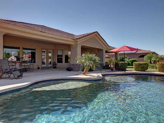 Stunning custom home in the desirable gated community of Russell Ranch. Live in luxury at the base of the White Tank Mountains. The backyard oasis is the perfect place for family & entertaining and allows you to enjoy the outdoors all year round. This resort-like space has been thoughtfully designed and features sparkling pool, huge covered patio, built-in BBQ and beautiful green grassy area. You'll love the split floor plan which features great room, gourmet kitchen with breakfast bar and a breakfast nook with tons of windows. The master suite is generously sized and offers a seating area, spa bath, and his & hers closets. Additional features include separate office, formal dining room, and over-sized 3 car garage with cabinets. Easy to show. This beautiful property won't disappoint.