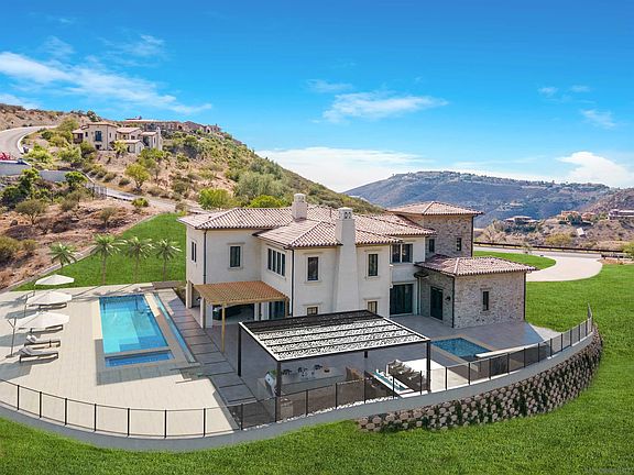 Modern Italian design offers clean & private living in Rancho Santa Fe’s coveted Guard Gated Cielo community. Light & Bright Open floor plan features 6 Bedrooms, 7 Baths, High Ceilings, Gourmet Kitchen, Large Dual Islands, Wolf™ Appliances & Seamless Bifold Doors for indoor/outdoor living. Formal Living & Dining rooms, secluded Master Suites w/ luxurious Master Bath, En suite Junior Master's, Four-car Garage, Office, Gym, Large Bonus room with newly upgraded flooring throughout second level. Approved plans for the Ultimate Entertainers Backyard included, welcome to life at the top!