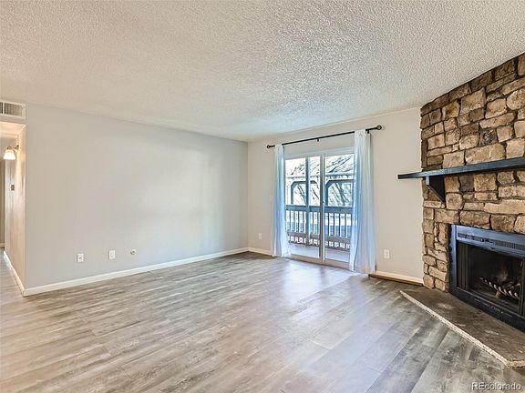 Move In Ready! Step into this spacious unit with open living room area with wood burning fireplace, separate dining area, galley style kitchen with new cabinets, quartz countertops and stainless steel appliances. Down the main hallway is a laundry closet with a side-by-side full size washer and dryer which is included. Updated full bathroom with good storage, 2nd and 3rd bedroom with standard size closet space. Primary bedroom with extra large closets and ensuite full bathroom with large stall shower. Unit has large covered patio with additional storage closet and comes with 2 reserved parking spaces and detached single car garage. Located in well maintained community with walking paths, basketball court and park. Conveniently located near Buckley AFB, shopping, restaurants and public transportation. Don't miss out on this one!