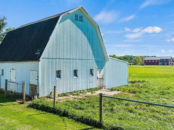 This 1583 sq ft CHARMING farm house sits on 4.75 acres, owner has fenced a large pasture field connected to the 32 x 28 barn with 2 stalls, for animals of your choice. There is also detached garage 50 x 26 that sports a large workshop. 11 x 14 summer kitchen, 12 x 20 coop and a wood shed also remains. Owner put a new steel roof on house, newer dishwasher, antique kitchen sink with new faucets, new light fixtures , refinished wood floors. All the appliances remain along with the wood island and extra cabinet in Kitchen. Geothermal heat and air, newer bathroom . Asphalt driveway with plenty of room for extra parking, garden area, and orchard trees. 3 bedrooms , enclosed front porch. Newer landscaping. Northwest Allen Schools.