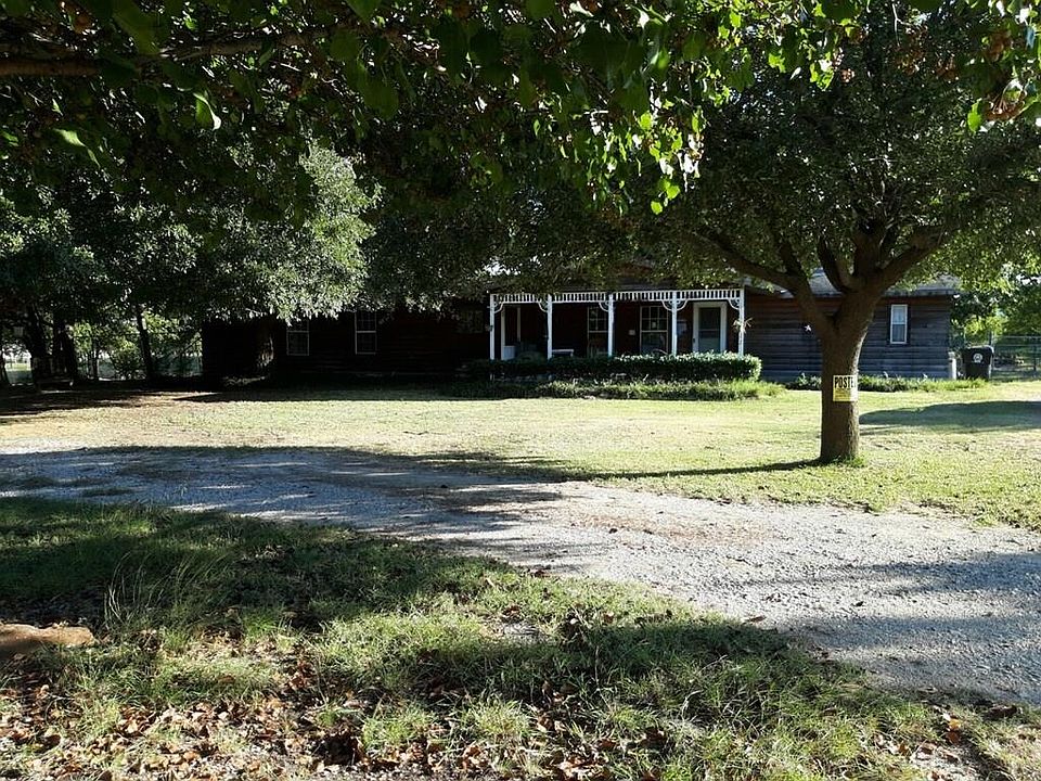 This is peace of country living on 2.472 acres. No restrictions, outside city limits. Horses and all animals welcomed. Home is log cabined outside. Third room can be used as a bedroom, office or study. All appliances stay. All electric including double garage, storage building and enclosed patio. A lot in wood and barn metal. Enclosed patio with lots of windows has wood burning stove, ceiling fans and window units. Many trees including 3 pecan. 2 stable barn, pasture, hay barn and tackle shed. 8 ft chain link fence and barbed wire. RV Hookup included. Close access to 114W, Denton and Ft Worth. Start enjoying coffee outside with nature!