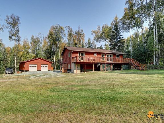 Wonderful raised ranch on private 2.5 acres with 28x28 garage. Light bright kitchen, huge master bedroom with walk in closet and private master bath. enjoy country living on 2.5 acres and yet close to Eagle River. Easy commute to JBER. Huge deck, Cedar sided, huge manicured lawn for family fun. Roof only 10yrs old.