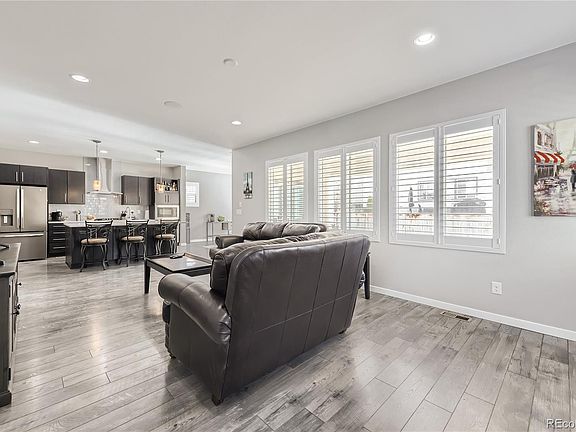 Amazing 2 Story Shea built home in Reunion! 3 bedrooms, 3 baths and 2 car garage. The main level has a den which could also be a 4th bedroom with a ¾ bath just off the hallway. The main living area is open concept with an abundance room perfect for entertaining. The kitchen is a chef’s delight with an upgraded kitchen. There is a large island for food preparation, gas stove, hood, soft close cabinets, and glass backsplash. The dining area is spacious with a glass sliding door that opens to a covered patio just perfect for barbeques. Upstairs is a primary retreat with a spa like bathroom, large walk-in closet, and barn doors. There are two additional secondary bedrooms, a full bath and laundry. The basement is unfinished with two egress windows just waiting for your vision and finishing touches. There are several upgrades throughout this home engineered hardwood floors, canned lighting, wired sound, custom plantation shutters, nest thermostat, smart locks, ring doorbell and pre-wired for a security system and solar, outlets in the front eaves for holiday lighting. This lovely home is a few steps from the walking path that leads to the neighborhood hub, the Reunion Coffee House and Reunion Park. Quick access to the highway system as well!