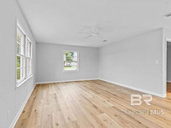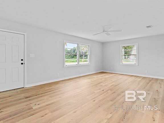 TURN-KEY READY and NEWLY REMODELED! This cozy home boasts all the upgrades including FRESH paint, NEW roof, and updated/ remodeled Interior and Kitchen! The neutral interior color scheme is your blank canvas for making the place your very own. Kitchen features SS appliances, sleek cabinetry & drawers, Eat-In Dining, and easy flow to the Living Room. You'll find additional space for relaxing or enjoying company in the Den, which has its own exit outdoors as well as extensive views of surrounding farmland. The three bedrooms offer new, modern light fixtures + ceiling fans, and the bathroom has a bright fresh look as well! Additional storage available in the back Storage Building. What's more, the home sits on a corner lot within 2 miles of local schools and within walking distance of the city Sports Complex! Of course you're also right around the corner from Hwy 59, putting the best of Baldwin County a straight shot from your front door. Beautiful opportunity for first time home buyers, investors, young families, retirees...Come see it for yourself today! Buyer to verify all information during due diligence.