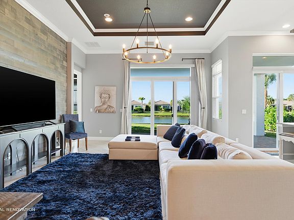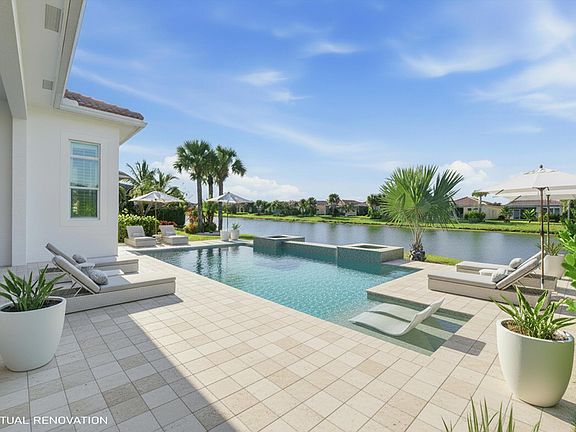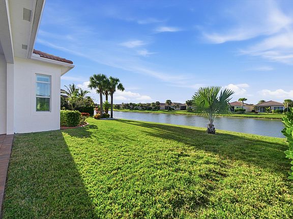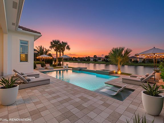 Welcome to 18024 SW Cosenza Way, an elegant and meticulously maintained home located inside the highly desirable PGA Village Verano community. This residence offers peaceful water views, a modern open layout, and a lifestyle centered around comfort, connection, and resort-style living.Inside, you'll find a bright, inviting floor-plan with a spacious kitchen and oversized island that flows seamlessly into the dining and living areas, perfect for everyday living or hosting friends and family. Large sliding doors frame the tranquil water view behind the home, filling the space with natural light and creating an effortless indoor and outdoor feel. A professional virtual rendering showcases how extraordinary the backyard could look with a future pool. The image highlights the stunning sightlines across the water and the potential to create a private oasis that enhances the home's existing outdoor charm and peaceful setting.