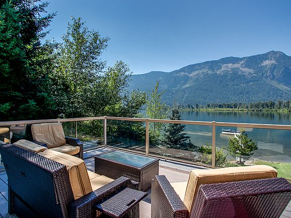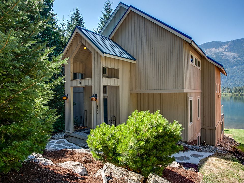 Experience the magical setting of Lake Wenatchee! High quality 4-bedroom on 50 feet of prime low-bank lake frontage with a floating dock, beach, and several zones for both relaxation and entertaining - screened porch, outdoor spa, deck, and flagstone patio area. Massive windows bring the beauty of the outdoors right into your living room, kitchen, and loft. Stacked stone fireplace, wood floors, quality kitchen, and daylight basement with a separate family room. Most furniture can be included for a turn-key experience.