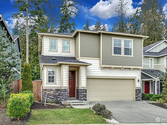 Immaculately maintained EAST FACING home in a desirable neighborhood in Bothell that feeds into highly rated Cedar wood Elementary. Enter into this spacious 2,117 sqft home with high ceilings, modern finishings, an open great room with a gorgeous chef’s kitchen, and Dining area. Take advantage of the quartz countertops and high-quality SS appliances. This home boasts a spacious primary bedroom with a 5-piece en-suite and generous walk-in closet. 2 additional bedrooms and loft are ready to suit your needs. Custom Closets in all rooms. Home comes with over $50K in upgrades; fully finished garage with EV Charging to synthetic turf so you can enjoy a low-maintenance yard! Prime location to commute from nearby highways, shopping, and much more!