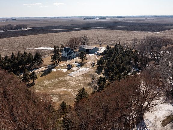 Come check out this fantastic 7-acre slice of heaven. This acreage features several outbuildings including a 40x81 machine shed, chicken coop, playhouse, 24x28 garage plus a newer septic system. The house includes a lot of the original character inside and out. The home also features a front porch with sweeping views, tall ceilings, walk-up attic, 105-gallon water heater, newer flooring and so much more.