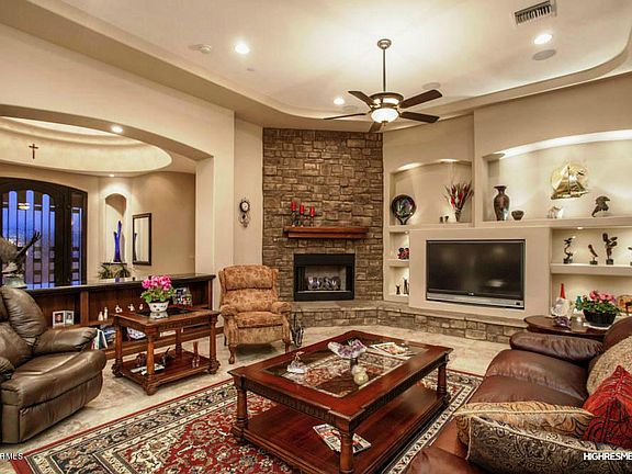 RV Traveler? Car Collector? Quality constructed, gorgeous Tuscan style custom home with double bay RV garage in gated community, carefully designed w/attention to detail & built for original owners/sellers. A combination of luxury & functionality makes this home elegant, yet comfortable for day-to-day living. Resort-like backyard perfect for entertaining. Chef's kitchen w/top of the line appliances is surrounded by an abundance of Alder wood cabinets & beautiful granite. Enjoy movies in your private theatre. Spacious master suite, en-suite w/steam shower. 2 guest suites, each w/private bath. 4th bedroom used as an office. Radiant hot water in-floor heating, 19 SEER A/C units & superior insulation. Too many Custom Features to list.