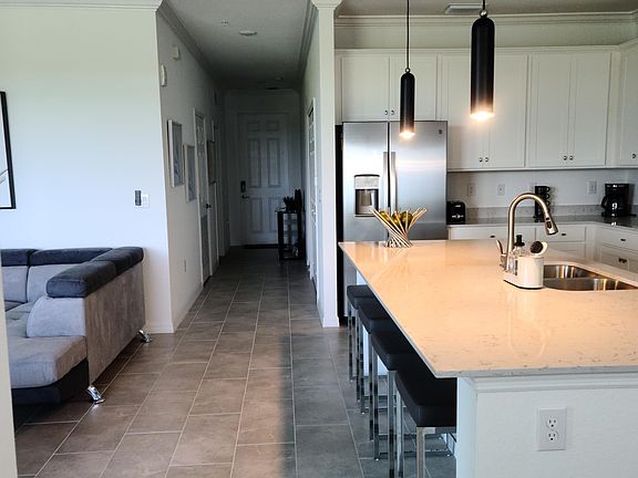 LAKEWOOD NATIONAL GOLF - FULLY FURNISHED 2 BEDROOM 2 FULL BATH HI RISE LUXURY CONDO Taking Applications NOW for Spring 2025 thru Winter 2026 Season!! -- MID SEASON: $4250/month - November thru December* -- HIGH SEASON: $6750/month - January thru April* -- DISCOUNTED: $4250/month - April and May* (2 mos rental) -- LOW SEASON: $3250/month - May thru October* -- ALSO DISCOUNTED: Multiple Month rentals. Rates Available Upon Request* *All prices include utilities and cable. Discounts given for 2 month or longer rentals Durations less than 6 months require 12% additional tax and all funds paid up front. Durations longer than 6 months require first, last & security deposit. Enjoy your upcoming Spring, Summer, Fall or WINTER 2026 vacation in this recently constructed top floor condo located in the Lakewood National Golf and Resort community of Lakewood Ranch. Finished in June 2022, this 4th floor unit is accessible via both elevator and stairs and overlooks a gorgeous view of the golf course, lakes and beautiful panoramas. For swimming/sunbathing, one of the beautiful satellite pools is just a brief walk from the condo to the corner. If you wish to utilize the spa/fitness/golf course, an optional amenities membership fee is also available upon request. The open floor plan features white kitchen cabinets with matching white quartz countertops and stainless appliances, and comes fully equipped with dinnerware, pots/pans, glassware and a full suite of other kitchen amenities. Both a cozy separate dining area and comfortable living room (complete with free-standing "fireplace" unit for cooler winter months) overlook an outstanding view of the golf course. Or if you prefer, the private furnished screened lanai allows you to enjoy your birds-eye views of the magnificent grounds while sipping your coffee or afternoon cocktails and enjoying the cool gulf breezes. The Master bedroom features a King size bed, nightstands and dresser, linen and walk in closet. The ensuite master bath has a large vanity with walk in shower. 2 sets of King sheets and bath linens are provided for your comfort and enjoyment. The guest bedroom features a Queen bed with nightstand, dresser and closet. The guest bathroom includes a tub/shower combo. 2 additional sets of Queen sheets and additional bath linens are provided for your comfort and enjoyment. There is also a separate full-size washer, dryer located inside the condo unit for your laundry convenience. This unit has 1 assigned parking spot under a covered carport conveniently located only steps away from the main elevator. Additional guest parking is situated behind the numbered spots. Lakewood National amenity package includes two Arnold Palmer designed courses featuring 36 holes of championship golf. A resort-style main pool with pool-side Tiki bar for casual dining and a full clubhouse for more formal dining are both available, in addition to 8 lighted Har-Tru tennis courts, 4 pickle ball courts, 2 Har-Tru bocce courts, fitness center, hair salon and spa. An optional membership fee is separate for this amenity package and is paid directly to the HOA if desired (membership not required). However, membership will grant access to GOLF and PICKLEBALL PRIVILEGES AND ALL RESORT AMENITIES, such as the Tiki and clubhouse dining facilities. Closely situated to I-75 gives you easy access to St Petersburg, St. Armand's, Tampa, Sarasota and nearby beaches. Close driving distance to nearby dining spots and shopping include University Town Center Mall, Lakewood Ranch Hospital and a short drive to Sarasota International Airport. Farmer's Market is open every Sunday. 18028 Gawthrop Dr is a condo located in Manatee County and the 34211 ZIP Code. This area is served by the Manatee attendance zone. Owner pays for all utilities and HOA fees. Guest only pays for 12% mandatory hospitality tax (applicable if rental duration less than six months), non-refundable housecleaning fee of $250, optional pet deposit fee of $350 per pet (if allowed). Optional fitness/clubhouse/golf membership also available (separate fee payable to clubhouse). Non-smoking, smoking allowed on front terrace walkway or front of building only. Smoking not allowed on private lanai or inside condo. -- HIGH SEASON: $6750/month - January thru April* -- DISCOUNTED: $4250/month - April and May* (2 mos rental) -- LOW SEASON: $3250/month - May thru October* -- MID SEASON: $4250/month - November thru December* -- DISCOUNTED: Rates Available Upon Request* (Multiple Month rental) *All prices include utilities and cable. Discounts given for 2 month or longer rentals Durations less than 6 months require 12% additional tax and all funds paid up front. Durations longer than 6 months require first, last & security deposit.