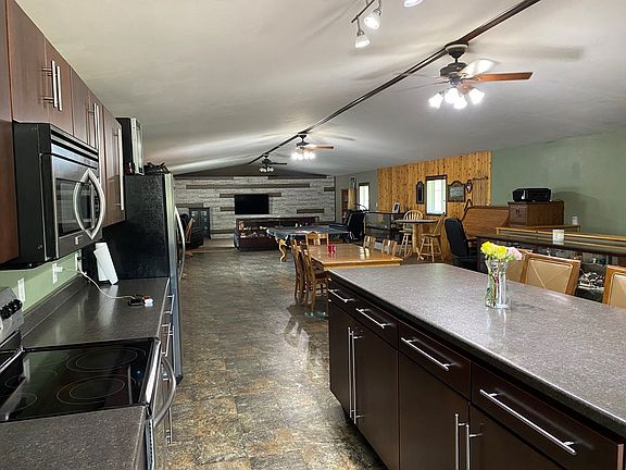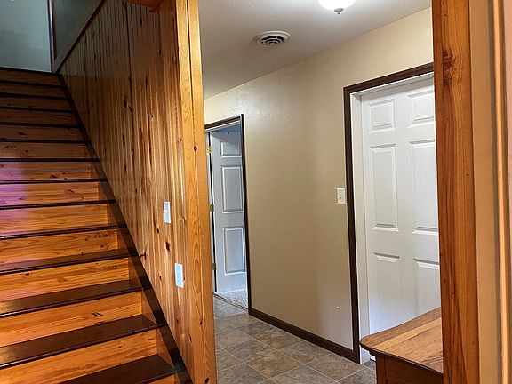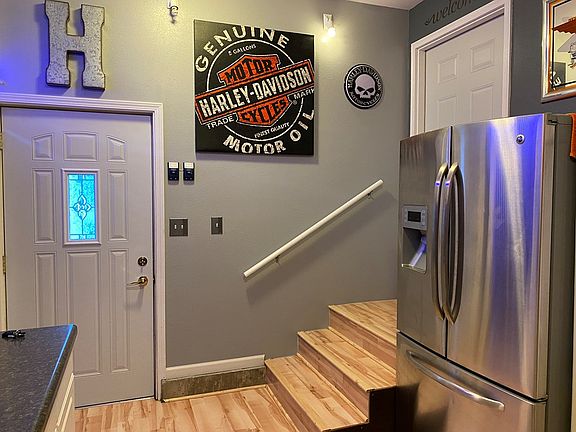 Open floor plan. Top floor has a walk out deck off the kitchen. Flows wide open from one end to the other— kitchen, dining, game (pool table), living room. 3/4 bathroom also. Downstairs (main floor) has 2 bedrooms, laundry and full bathroom. No basement but has 4’ concrete crawl space for storage. Nice entryway. Garage is 3 car and is heated with in floor drains. Good storage. Fenced in yard. With shed in back. Appliances stay along with washer and dryer. Roof is steel so no need to worry about replacing it.