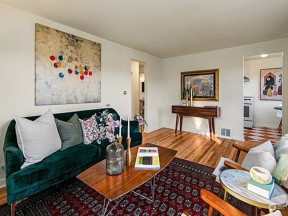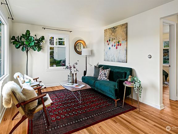 Nestled on a sun-drenched corner lot, this 1940s jewel is the perfect blend of vintage charm and thoughtful updates. One half of a classic zero lot line cottage, this 2-bedroom home sits gracefully above the street, offering privacy, light, and character. Views of Madison Valley from your retro kitchen and living room. The main level features refinished oak floors, oversized windows, bedroom and full bath, while the lower level offers a large family room, bedroom, 1/2 bath, laundry and storage. The back area hosts a shared deck with bamboo privacy screen and built-in bench, ideal for BBQs and entertaining. Off-street parking and a vibrant location, this is the perfect condo/townhouse alternative, easy access to all of Seattle. No HOA fees.