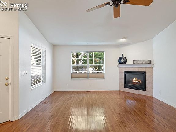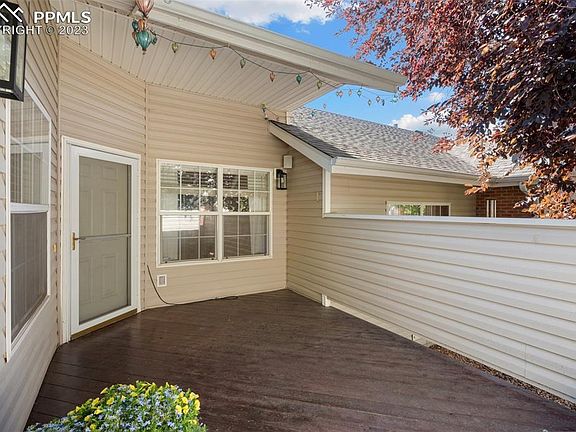 Inviting ranch style condo in Southwest Colorado Springs near Bear Creek Park! This home boasts an open floor plan and maintenance-free living offering 3 BR, 2 BA and 2 CA garage. The main level features extensive hardwood flooring, soaring ceilings and cozy great room with gas fireplace. The kitchen provides abundant counter and cabinet space, pantry, and adjoining dining nook. Ideal for entertaining, the kitchen overlooks the dining area and great room. The master retreat offers a 5-piece bathroom and huge walk-in closet. French doors lead to a secondary bedroom/office. Another bedroom is just steps from the full bathroom. The private deck is the ideal place to relax and enjoy the serenity of this location. This end unit provides a 2-car attached garage. New furnace and central air conditioning in 2021, new roof in 2019, new water heater in 2018. This quiet community is within walking distance to Bear Creek Park, Dog Park and Gold Camp Park. Conveniently located to shopping & dining with easy access to I-25. Visit this move-in ready condo today!