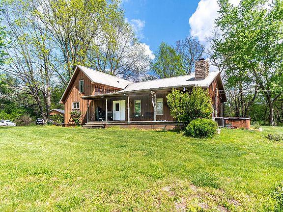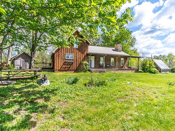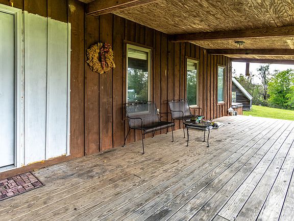 A very private wooded 28 acre piece of land with a pond and a long gravel driveway leading to a rustic wood sided cabin style home with a stacked stone FP, a nice kitchen, 2.5 baths, 4 -5BR, pellet stove, split units for heat/air, ,a nice unique deck with a tree growing through the center, a detached workshop garage, a log cabin style storage building, a neat greenhouse that is A shaped with the grow heat unit going through the wall plus glass panels. In one of the pastures the sellers raised cows and closer to the house the sellers raised chickens in chicken coops, had a fenced dog lot with a dog house, a regular style plastic green house plus sellers raised a large garden and canned. AG credit loan (farm loan) with good credit and at least 15-20% down payment or maybe an in-house loan at a bank with large down payment to buy this property, NO ..VA FHA RHS loans will work !!! Please don't set apt. to see if you need one of these loans !!! Property lines in any aerial photos or video are only approximate. This property has a beautiful view of trees and farms. Hurry this will sell fast.