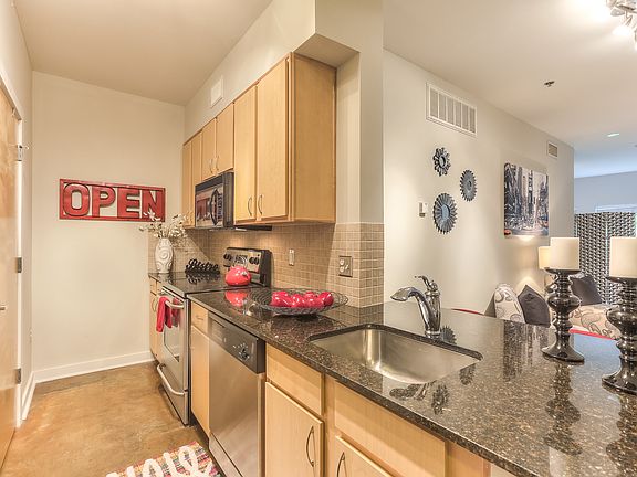 Hip condo conveniently located in highly desired Midtown near all the hotspots including Music Row, Vanderbilt, Belmont, the Gulch, Hillsboro Village, downtown Nashville. This unit has an open floor plan and offers beautiful stained concrete floors throughout. Kitchen boasts stainless steel appliances, maple cabinetry and granite countertops. Bedroom has two large windows for lots of light and the spacious bathroom features a vanity and large walk-in shower. Private patio offers separate entrance through double french doors. Washer and Dryer in utility room are included with the property. Designated parking space in gated underground garage is just steps from the front door of this first floor condo. Perfect when bringing home groceries or boxes from the car. All walls and trim have been freshly painted in a neutral color and Google Fiber was recently installed.The Bristol on Broadway is a controlled access 6 story development with a great lobby area, rooftop deck with grill for entertaining, outdoor courtyard, and 24 hour health & fitness center, Rare opportunity to be in the heart of Nashville for this price point! Dont miss out!