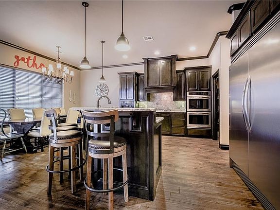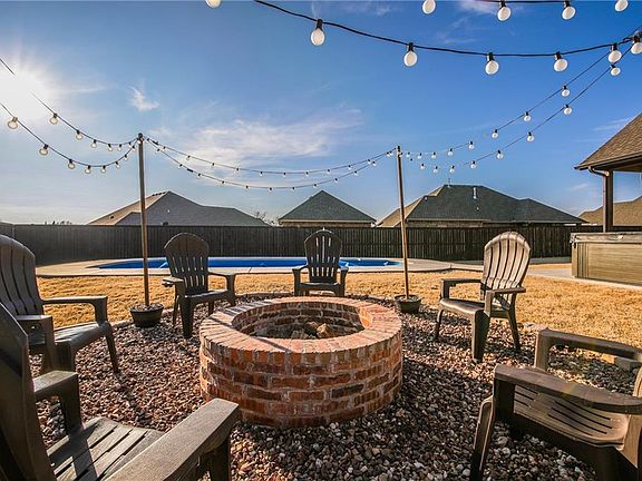 Grand home with small-town charm. Built for entertaining with inground pool, fire pit, hot tub and fireplace on patio. Three bedrooms, plus office, plus two bonus rooms give multiple options for living arrangements and hobbies. Sitting on a cul-de-sac so traffic is nearly non-existent. Large kitchen with breakfast bar, built in coffee maker, built-in ice maker, built-in commercial fridge and R.O. drinking water system. One owner custom built home. Envelope spray foam insulation. Storm shelter in the garage floor. Dog run with concrete wash area. Walking/riding distance to schools, shopping, and dining. Front and back yard sprinkler system. Electric outlets on eve of home for holiday lighting. Too much to list. Ask your Realtor for a complete list. Two bonus rooms not calculated in square footage. Buyer to verify square footage.