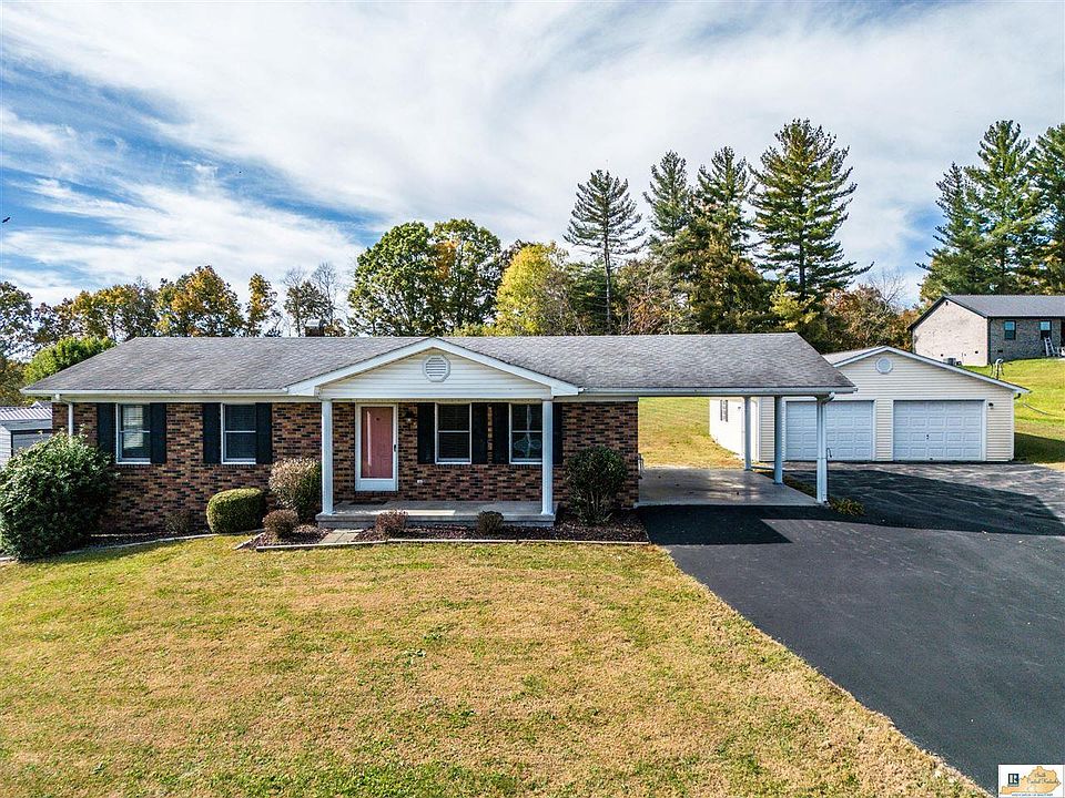 Nice brick home sitting on approximately one acre and conveniently located only two miles from Columbia city limits. House features two bedrooms, two bathrooms and a walk-in basement. There is also a 2 car detached garage with electric, which would make an excellent work shop or other usage. House has central heat/air and a combined kitchen and dining room with a large living room. The property has a nice blacktop driveway. This would be a great starter home or to downsize. Call soon! This home won't last long.