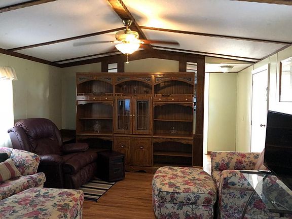 2 bedroom with 2 full bath singlewide mobile home on corner lot. Central heat and air with on the wall gas back up heater. Water by shared well. Refrigerator, stove. Microwave "as is"and Washer and dryer "as is". Kitchen table and chairs stays along with some other furnishings. Tenant to mow and weedeat to road and along with mailboxes to telephone poll. Application fee of $25 credit and background $550 deposit / $550 rent.