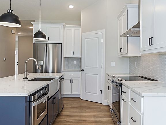 New Construction open floor plan Ranch. 2 Bedrooms and 2 Bathrooms on main. Beautiful Kitchen with White cabinets, quartz countertops, stainless appliances, tiled backsplash and walk in pantry. Laundry/Mudroom with built in lockers. Master suite with tiled surround shower, vanity with quartz tops. Family Room with stone surround fireplace. Fully sodded yard. Pictures are of a similar completed home.