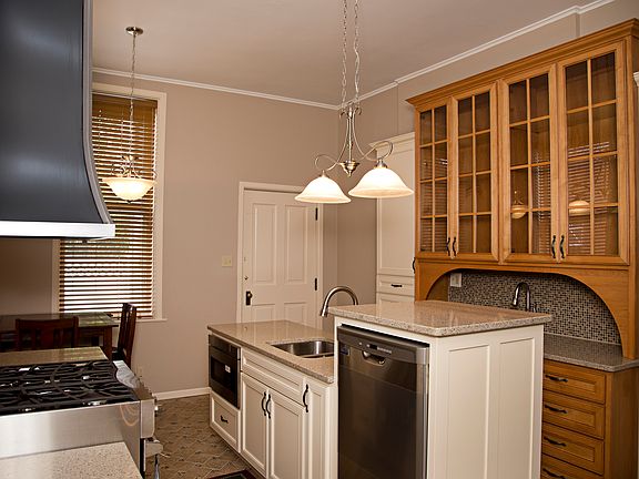 Welcome to this turn of the century home that has been brought back to the original condition plus all new amenities. Quality custom kitchen with top of the line appliances including stove, granite counter tops and large island. Formal dining room with oak beamed ceiling plus 12 ft. tall ceilings on the main level. Master suite on the main level with a romantic fireplace, 5 ft. walk-in in shower with surround. Italian marble flooring, double vanities plus a large walk-in closet. 2 car garage plus a Porte Cochere. Original features include pocket doors, 14 inch crown molding, open staircase, and 2 fireplaces. Many updates including roof, zoned heating & air, kitchen, baths, laundry on both levels, refinished hardwood floors, drywall, exterior and interior paint, electric, plumbing and more. Other room is walk-in closet.