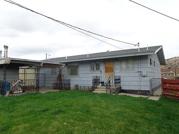 Ranch-style residence with three bedrooms, two bathrooms, large living room and main floor laundry, hot water heating and open kitchen/dining space. Other features include open decorative front porch, covered rear patio, oversized two-car detached garage w/shop area.
