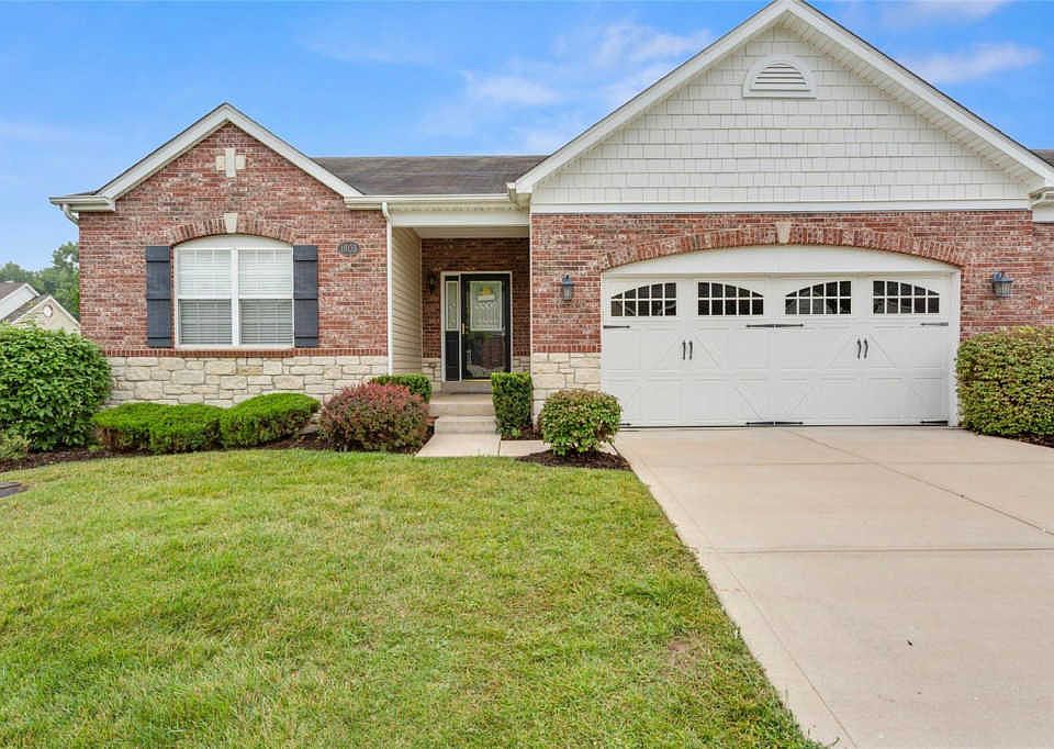 Chesterfield, Parkway Schools; 3 Bedroom, 3 Bath Villa with New Carpet Throughout 7/18! Stylish brick/ stone elevation. The Vaulted great room ranch with wall of windows creates a bright, open feel. The kitchen offers a center island with breakfast bar, glass-tile backsplash, stylish black appliances, recessed lighting & plenty of cabinets. The breakfast room/dining room opens to the great room & kitchen, bay area with slider to the deck. The master bedroom suite offers a bay window, large walk-in closet and master bath with double vanity, tub & separate shower; 2nd main floor bedroom also offers a walk-in closet while the 2nd full bath is just steps away. Main floor laundry. The finished lookout lower level has 9-foot pour, spacious rec family room, third bedroom and third full bath. Still plenty of room for storage. Convenient location and low maintenance villa style living. Relax on the deck big enough for grilling & entertaining. Easy access to major roads & highways.