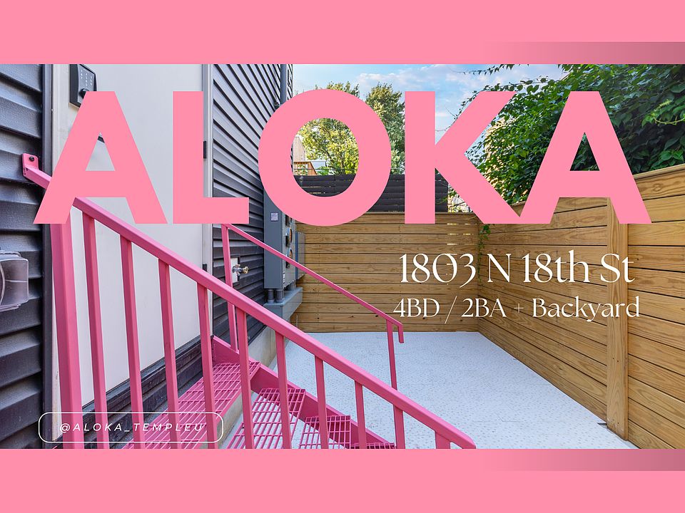 Live Aloka | 1803 N 18th St, Unit 2. This luxury 4 bed x 2 bath residence + private BACKYARD comes with 24/7 Google Nest security cameras, boho funky textures and vivid color palettes, top-of-the-line finishes, gourmet kitchens and 1-to-1 private bathrooms for each tenant. Other features include: Scandi-inspired luxurious bathrooms, in-unit washer and dryer, Ring intercom systems, and many design & construction quality upgrades throughout.